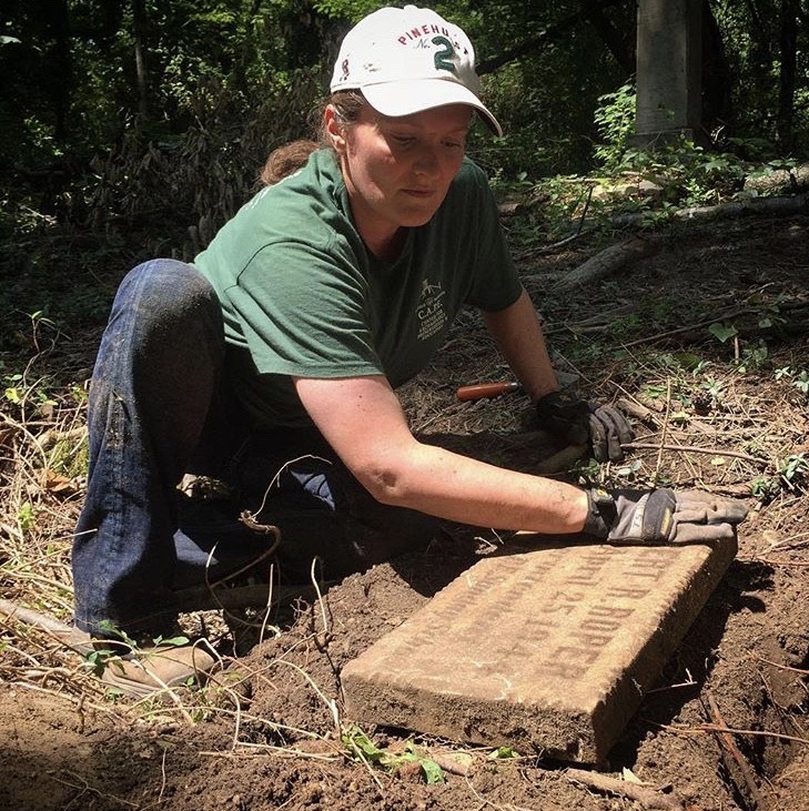 Melissa Pocock, board secretary of the Friends of East End and fundraising ace, is among the longest-serving volunteers at the cemetery. A graduate of William & Mary, with a degree in anthropology and focus in historical archaeology, she spent three summers in Barbados as part of W&M’s archaeological field school program; in 2008, she helped lead the excavation at the George Washington House in Bridgetown. Since 2014, Melissa has served as an alumna representative on the Lemon Project Committee on Memorialization. She brings her passion for preservation to East End, where she guides volunteers in the careful recovery of fragile, long-buried grave markers with infinite patience and enthusiasm.